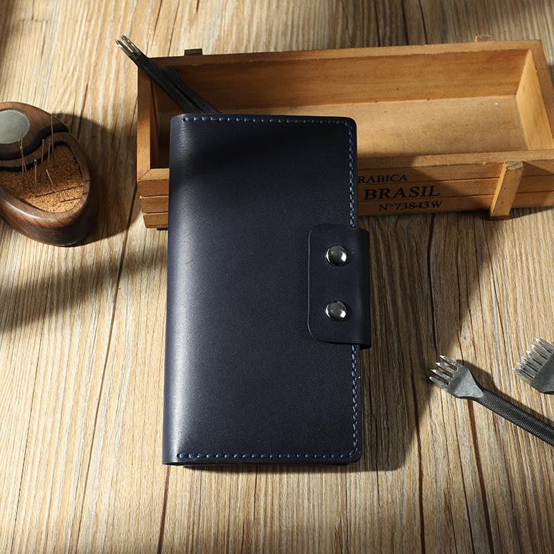 Handmade Blue Leather Mens Bifold Long Wallets Personalized Blue Checkbook Leather Wallets for Men
