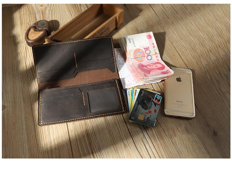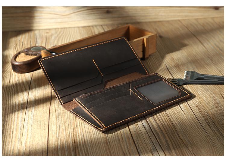 Design: Handmade Coffee Leather Mens Bifold Long Wallets Personalized Coffee Checkbook Wallets for Men