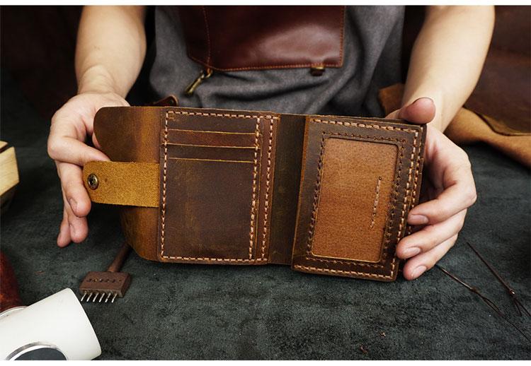 Design: Handmade Brown Leather Mens Trifold Billfold Wallet With Coin Pocket Blue Small Wallet for Men