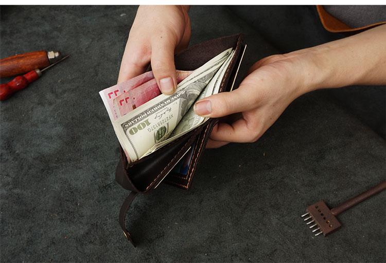 Style: Handmade Brown Leather Mens Trifold Billfold Wallet With Coin Pocket Blue Small Wallet for Men