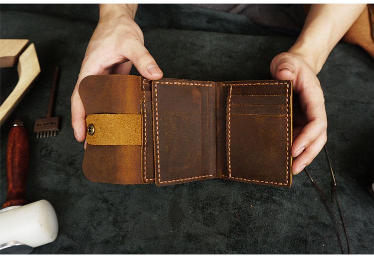 Handmade Blue Leather Mens Trifold Billfold Wallet With Coin Pocket Brown Small Wallet for Men