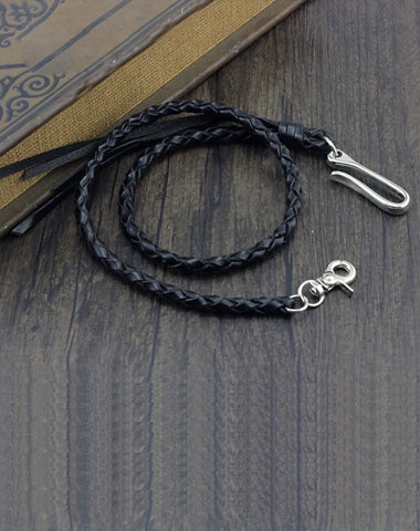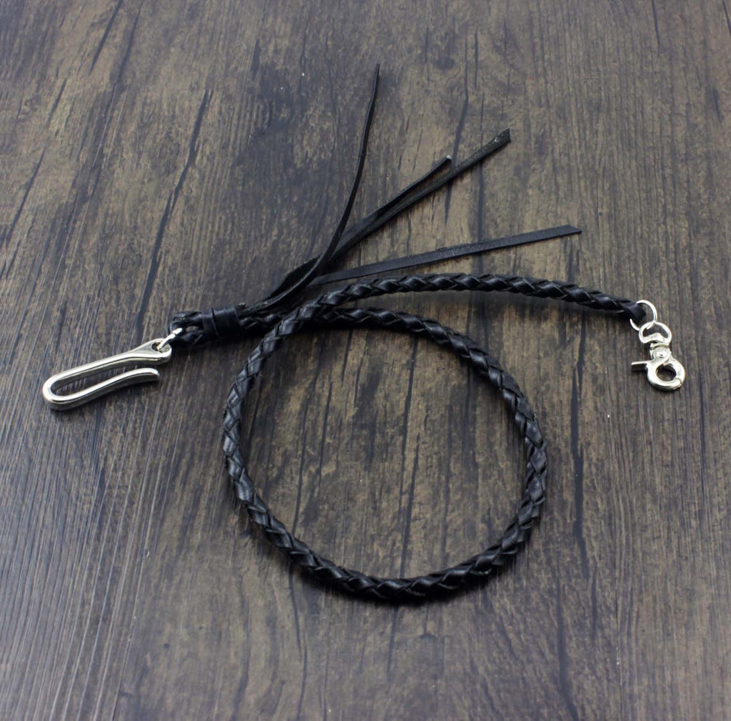 Handmade Braided Black Leather Cool Punk Rock Wallet Chain Biker Trucker Wallet Chain Trucker Wallet Chain for Men