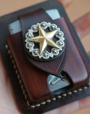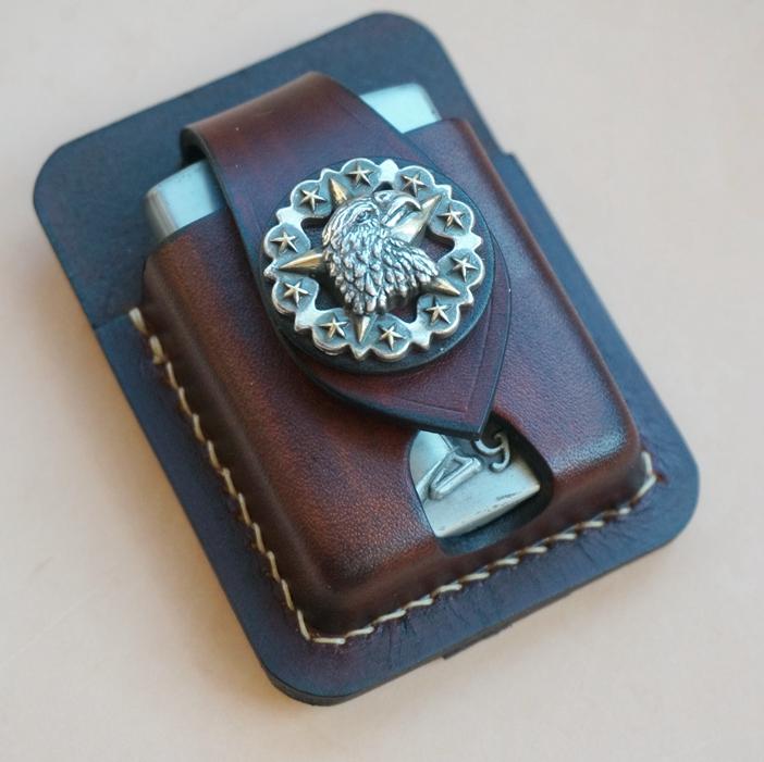 Design: Handmade Brown Thick Leather Lighter Cover Black Protective Lighter Cover For Men