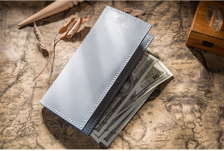 Handmade Brown Leather Long Wallet Bifold Multi Cards Checkbook Wallet for Men