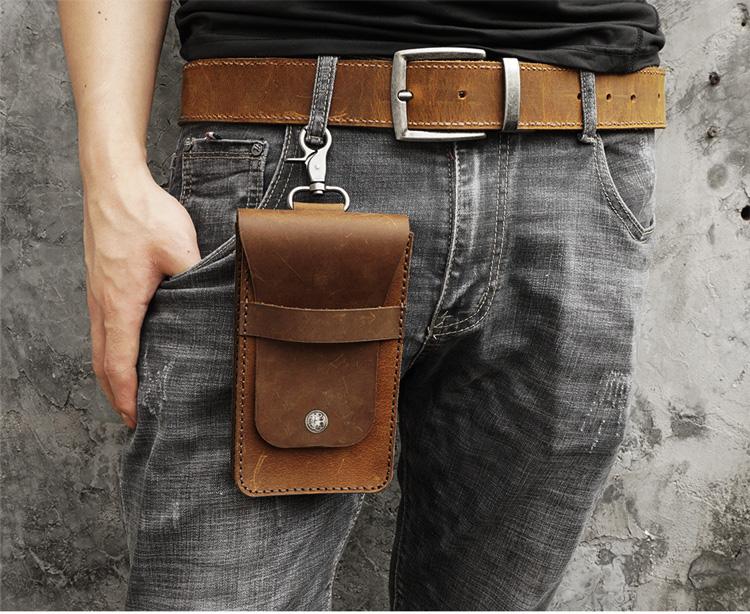Style: Handmade Brown LEATHER MEN Belt Pouch Waist BAG Slim Belt Bag FOR MEN