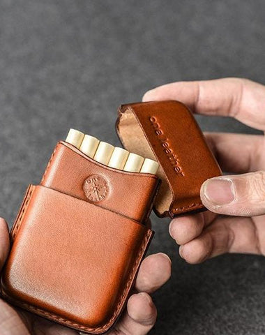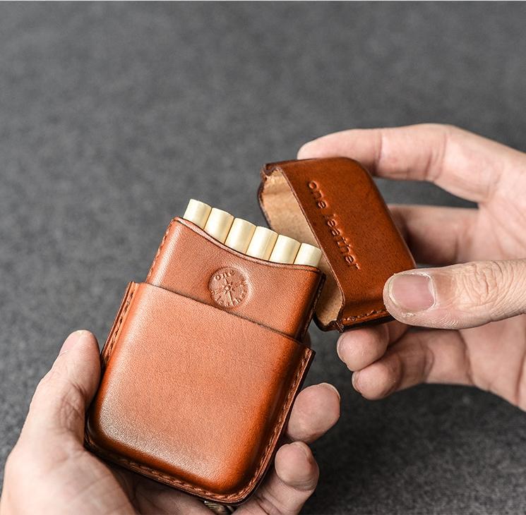 Style: Handmade Leather Mens 11pcs Cigarette Holder Case Cool Custom Cigarette Case for Men