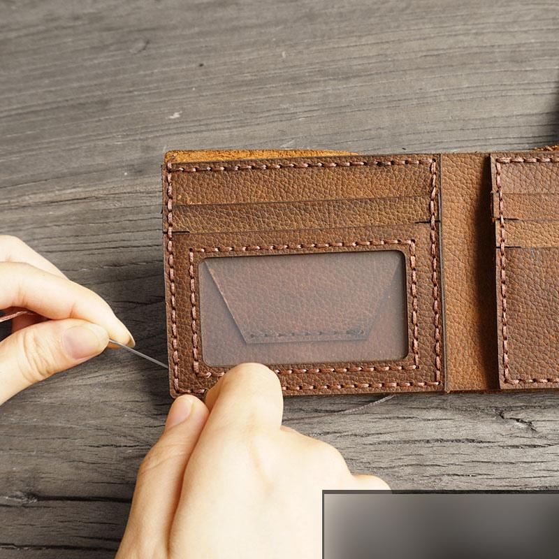 Style: Handmade Brown Leather Mens Bifold Billfold Wallets Slim Small Wallet for Men