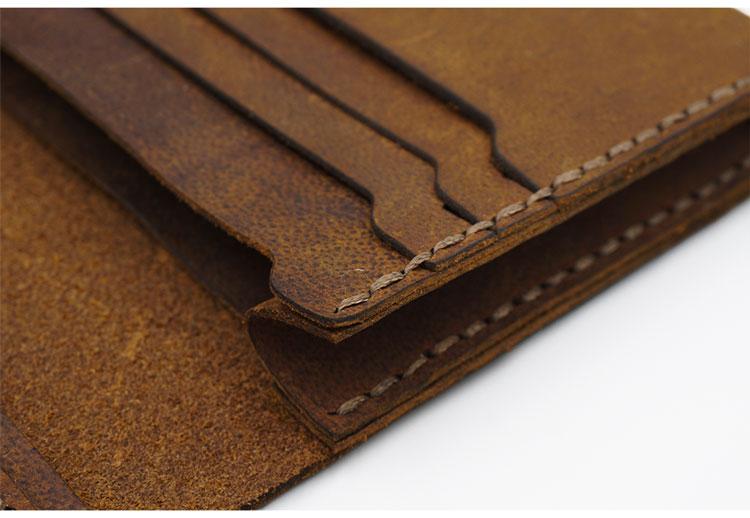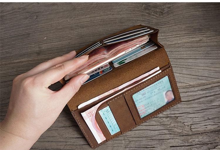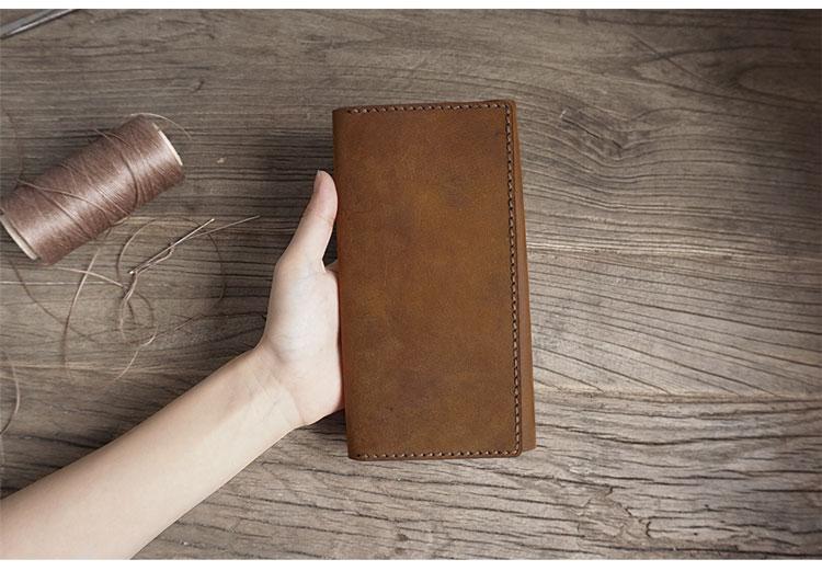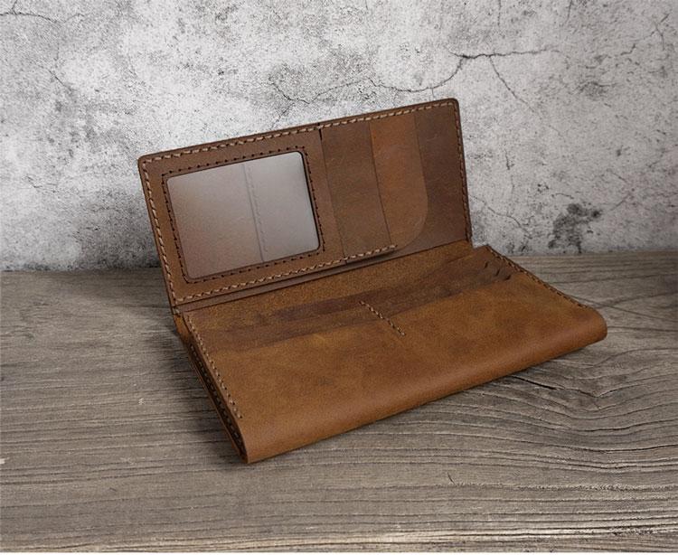 Style: Handmade Brown Leather Mens Bifold Long Wallet Lots Cards Travel Long Wallet for Men