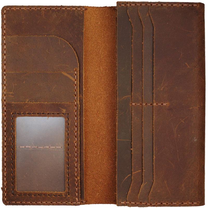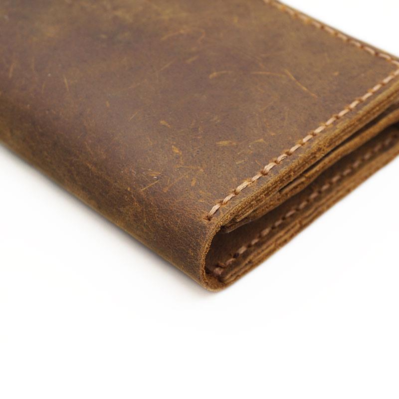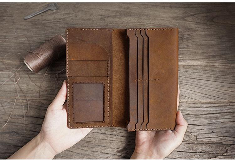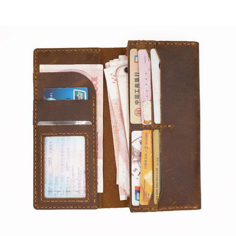 Style: Handmade Brown Leather Mens Bifold Long Wallet Lots Cards Travel Long Wallet for Men
