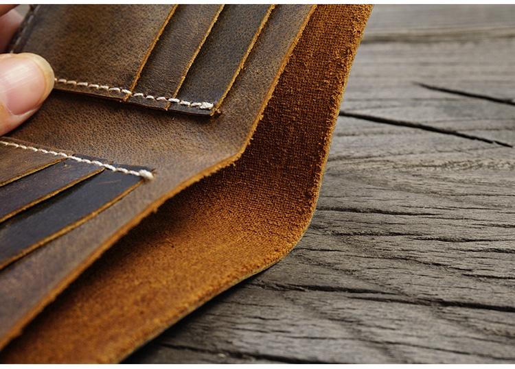 Style: Handmade Brown Leather Mens Billfold Wallets Slim Brown Bifold Small Wallet for Men