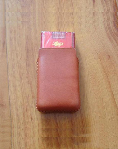 Style: Handmade Cool Brown Leather Mens Cigarette Case Cigarette Holder Case for Men