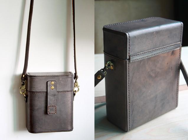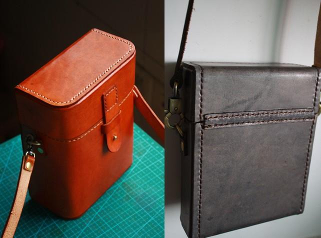 Design: Handmade Brown Leather Mens Small Box Bag Shoulder Bag Messenger Bag for Menv