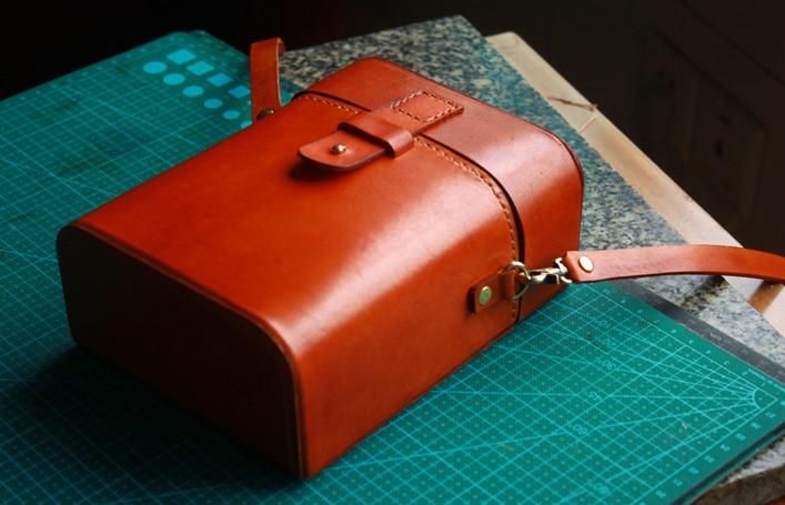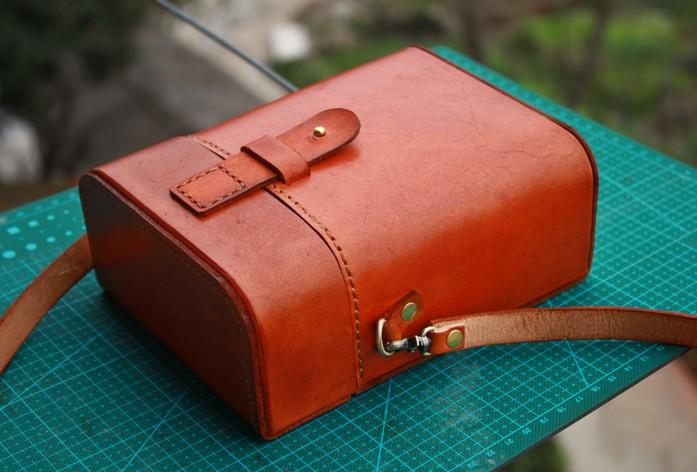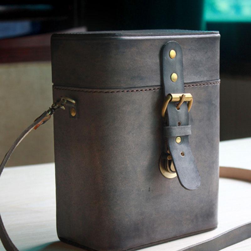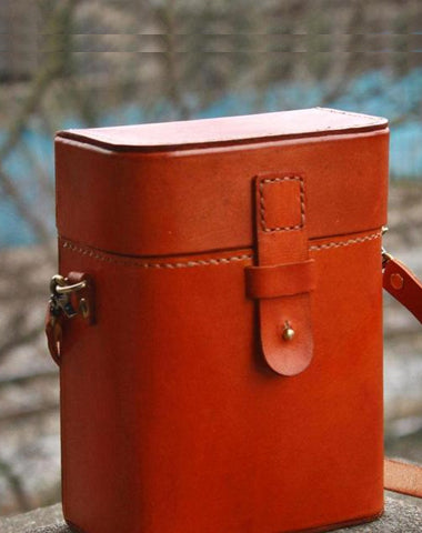 Style: Handmade Brown Leather Mens Small Box Bag Shoulder Bag Messenger Bag for Men