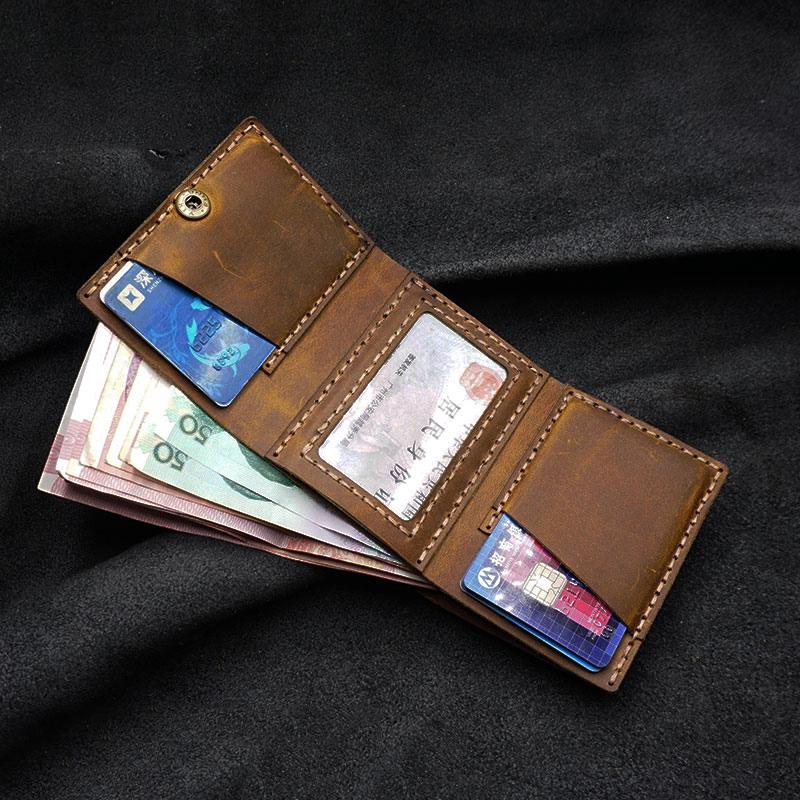 Design: Handmade Brown Leather Mens Trifold Billfold Wallets With Front Pocket Wallet for Men