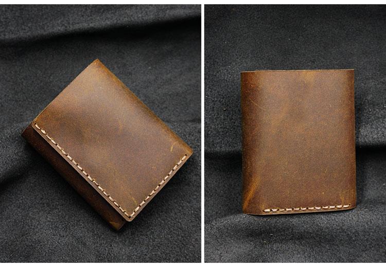 Design: Handmade Brown Leather Mens Trifold Billfold Wallets With Front Pocket Wallet for Men