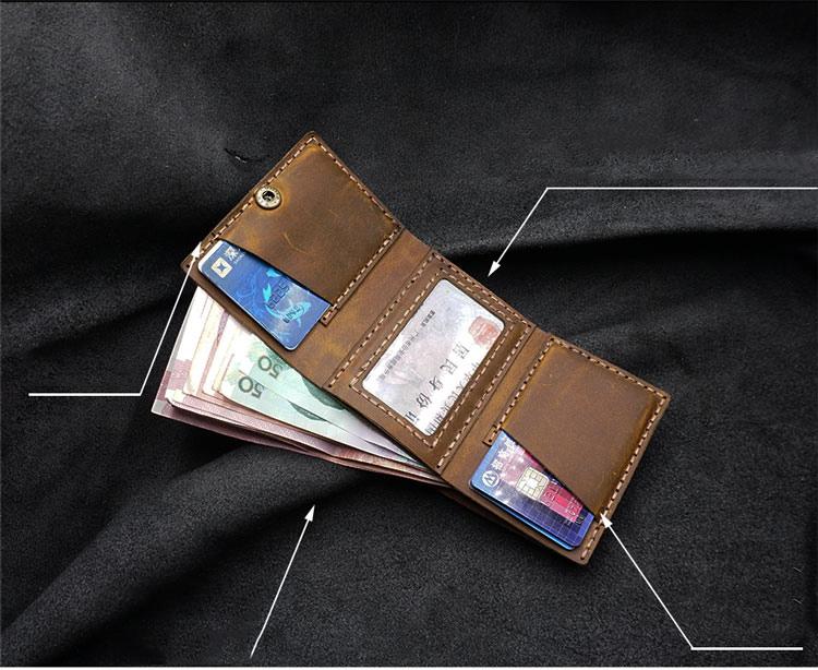 Style: Handmade Brown Leather Mens Trifold Billfold Wallets With Front Pocket Wallet for Men
