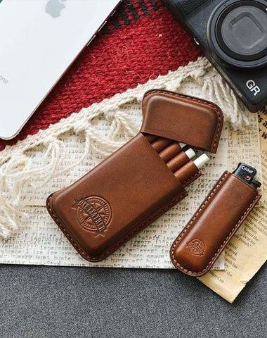 Style: Handmade Brown Leather Womens 10pcs Cigarette Holder Case Cool Custom Cigarette Case for Women