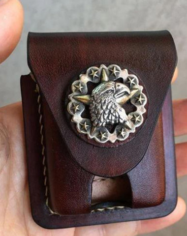 Style: Handmade Brown Thick Leather Lighter Cover Black Protective Lighter Cover For Men