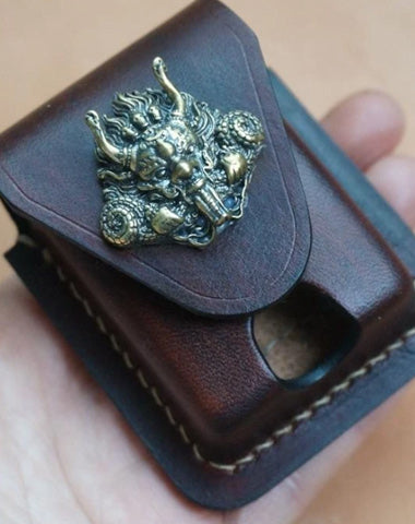 Design: Cool Handmade Coffee Leather Mens Armor Zippo Lighter Case Armor Zippo Lighter Holder for Men