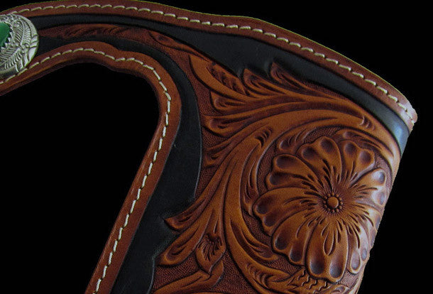 This is handmade black?coffee natural Italian Vegetable Tanned leather long floral carved biker wallet purse clutch for men.The wallet is bifold,color is black&coffee.There are 2?ful