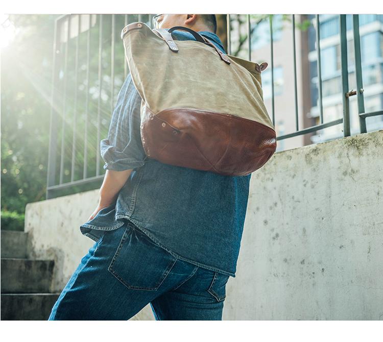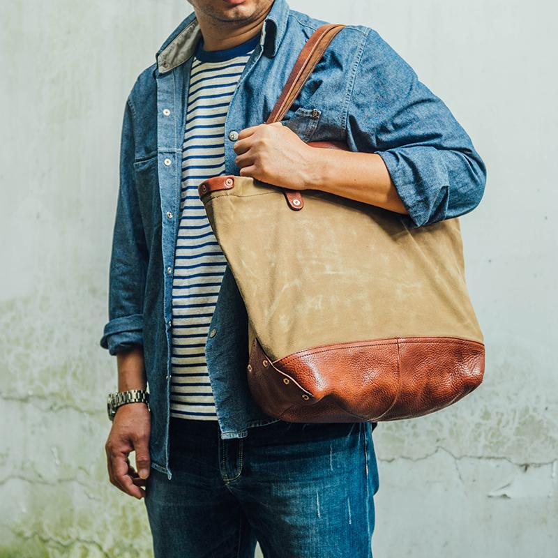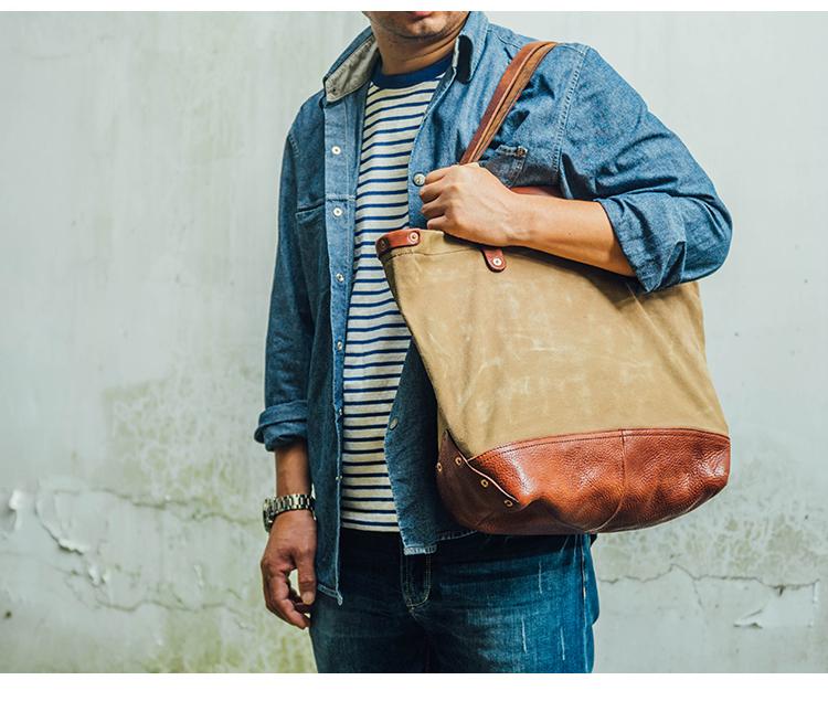 Design: Handmade Canvas Leather Cool Mens Tote Bag Canvas Handbag Canvas Tote Canvas Messenger Bags for Men Women
