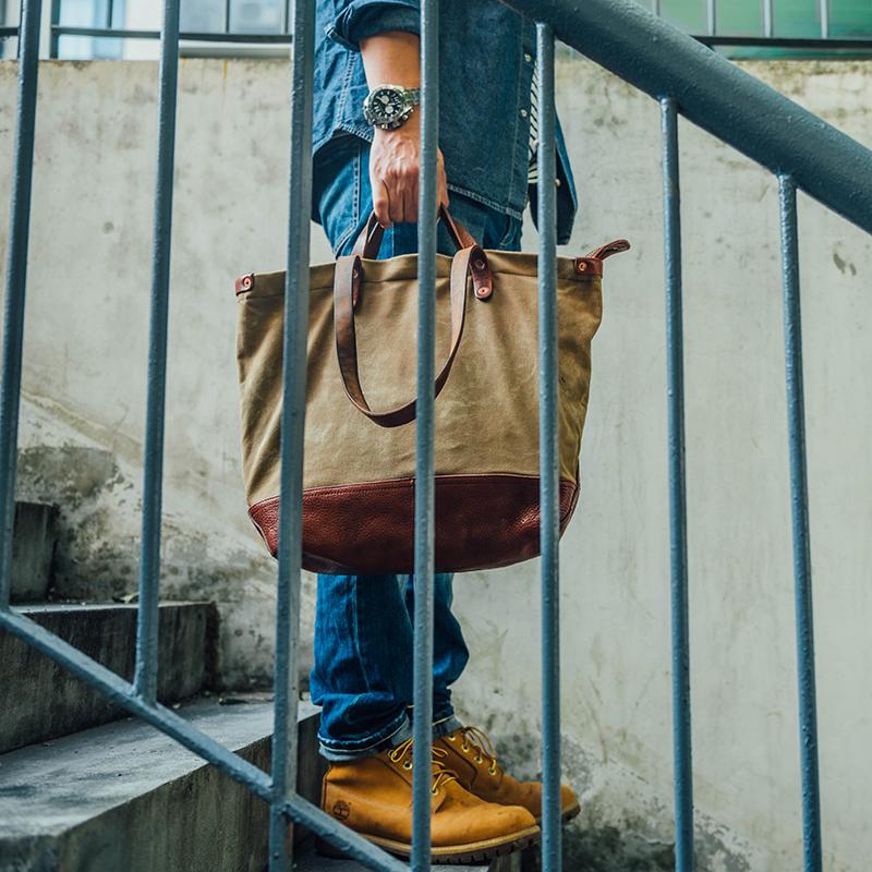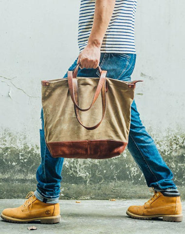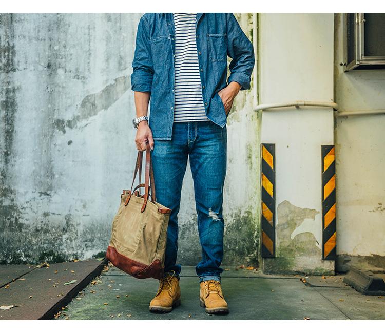 Style: Handmade Canvas Leather Cool Mens Tote Bag Canvas Handbag Canvas Tote Canvas Messenger Bags for Men Women