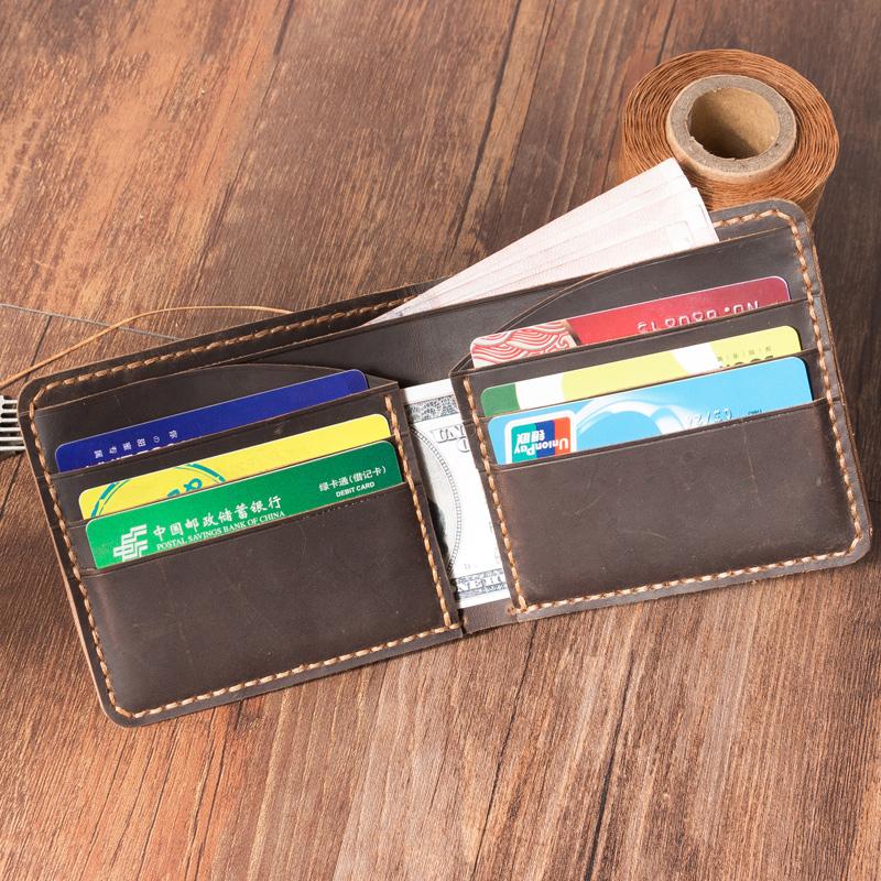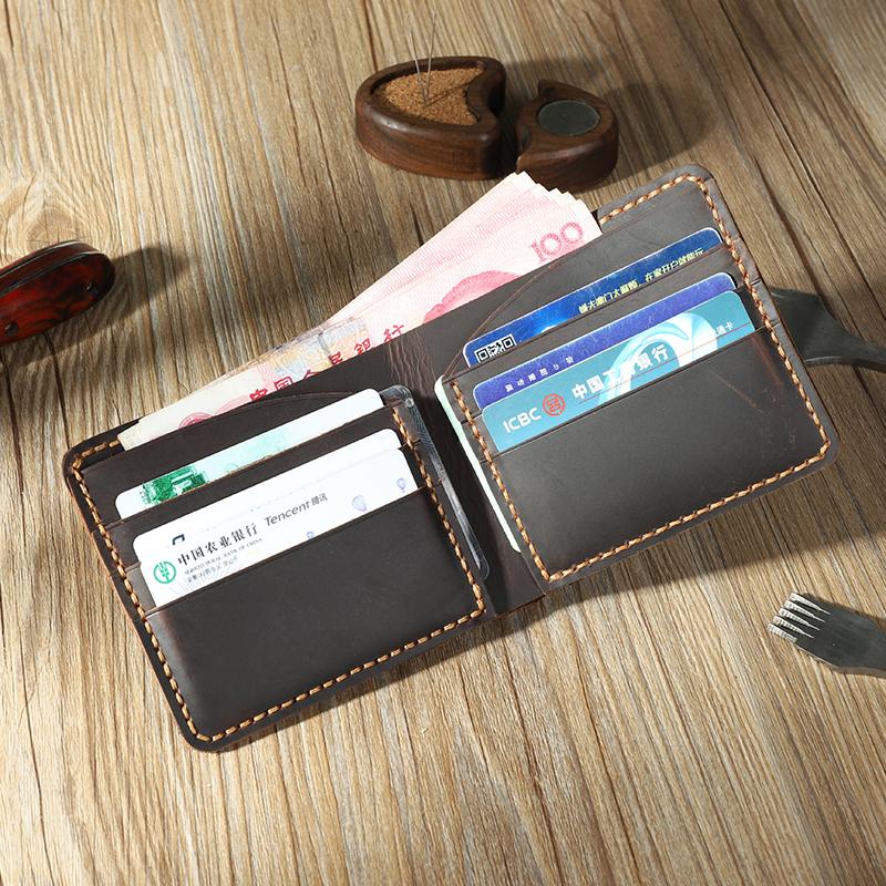 Design: Handmade Coffee Leather Bifold Billfold Wallets Personalized Mens Bifold Wallet for Men