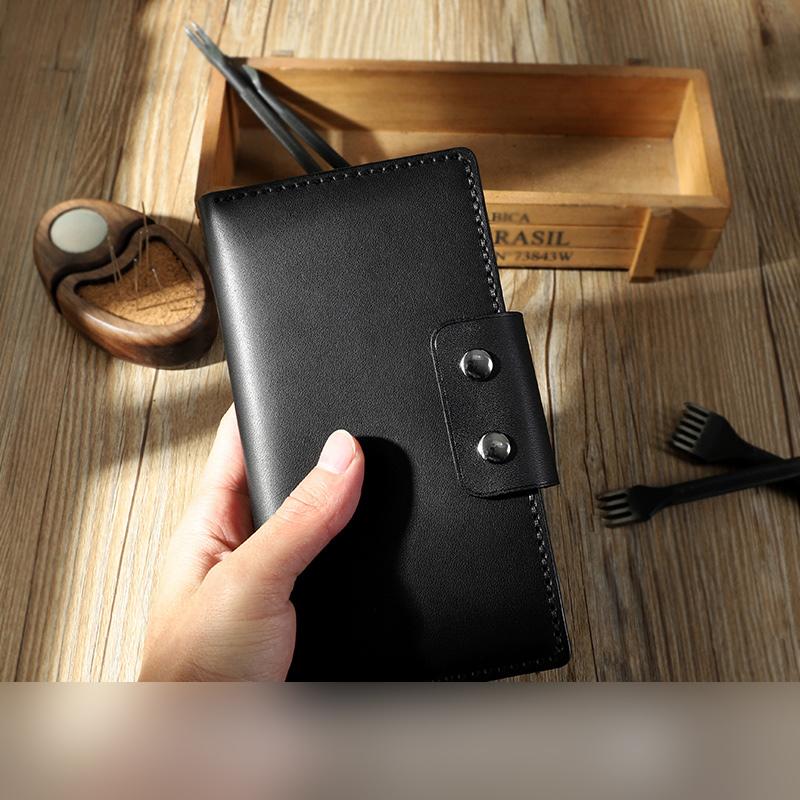 Style: Handmade Coffee Leather Mens Bifold Long Wallets Personalized Black Checkbook Leather Wallets for Men
