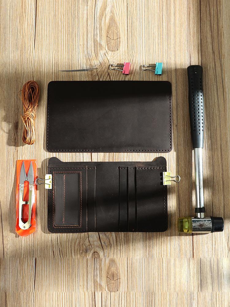 Design: Handmade Coffee Leather Mens Billfold Wallets Personalize Coffee Bifold Small Wallets for Men