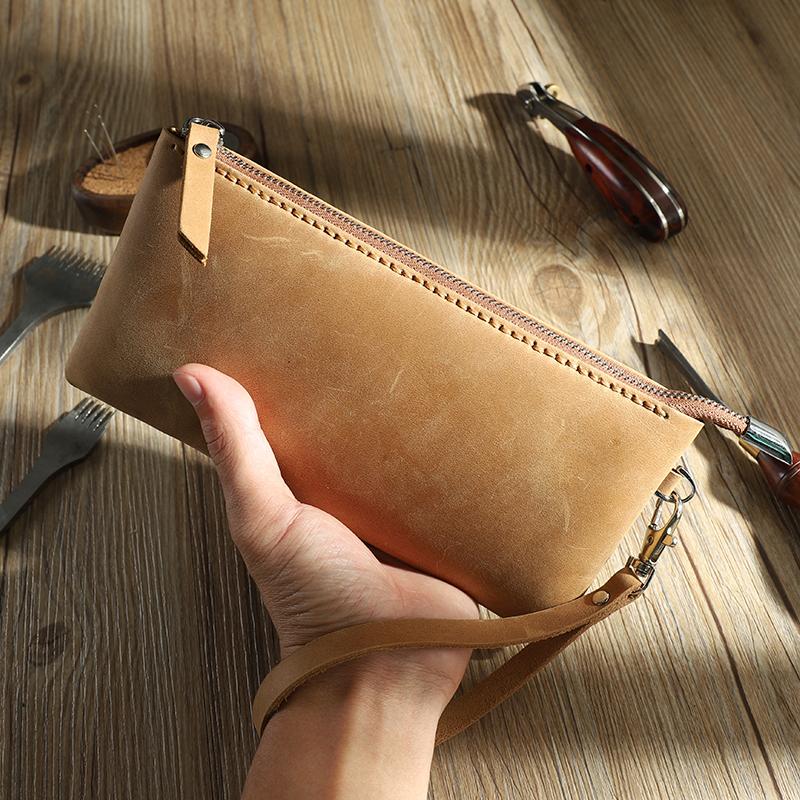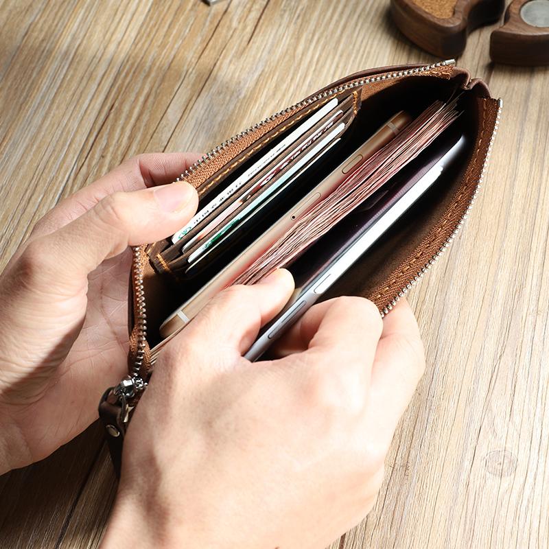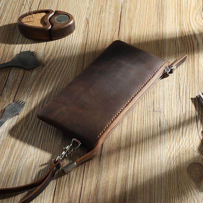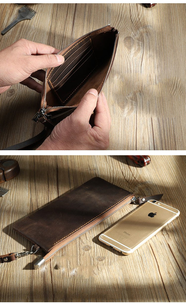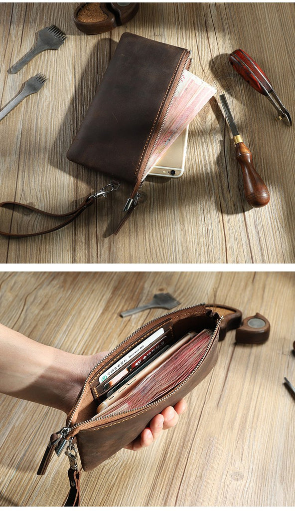 Style: Handmade Coffee Mens Clutch Wallet Personalized Coffee Leather Slim Zipper Clutch for Men