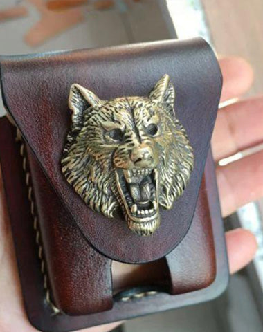 Design: Cool Handmade Coffee Leather Mens Armor Zippo Lighter Case Armor Zippo Lighter Holder for Men