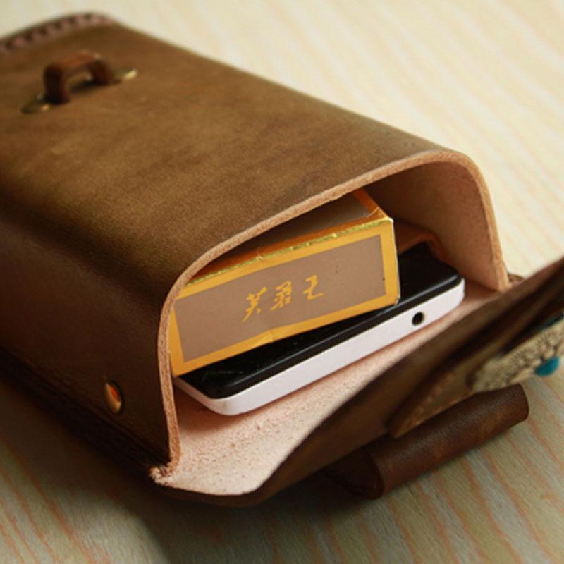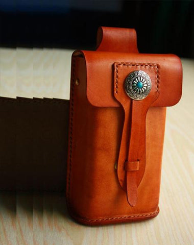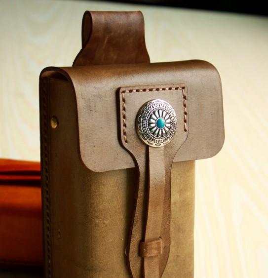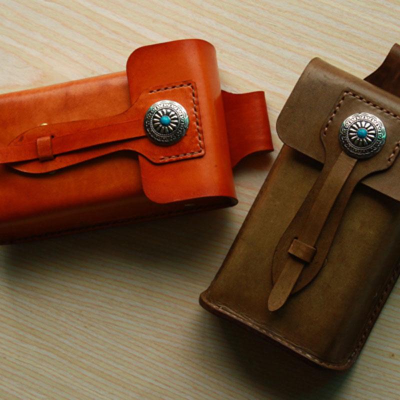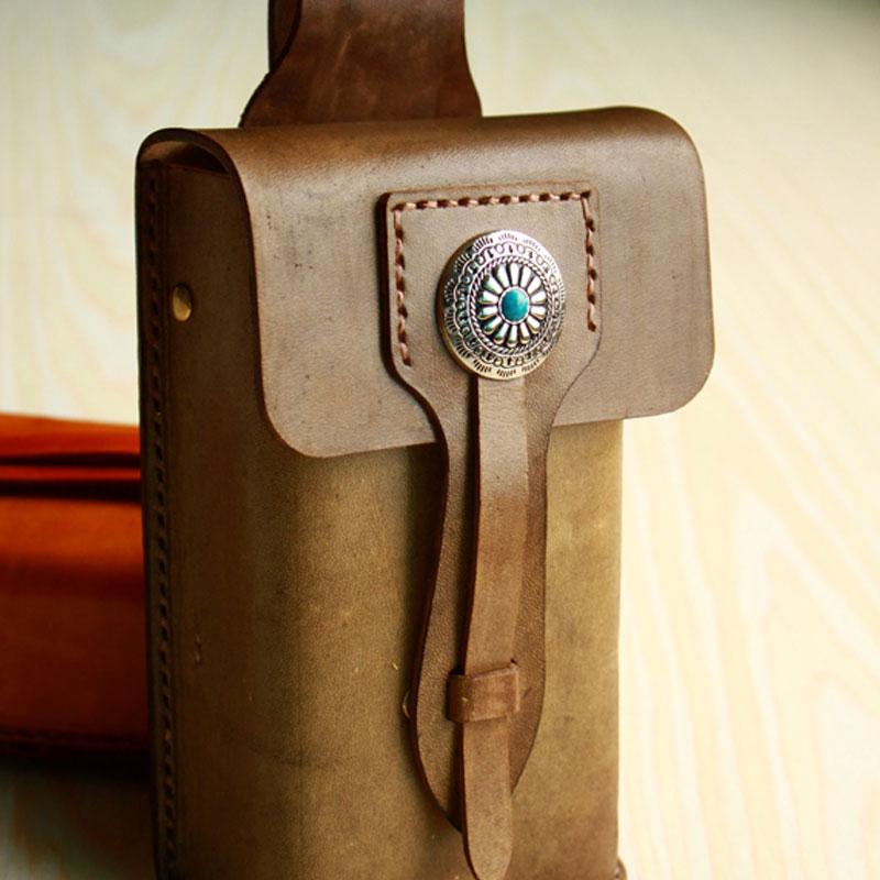 Design: Handmade Cool Leather Belt Pouch Mens Waist Bag Cell Phone Holsters for Men