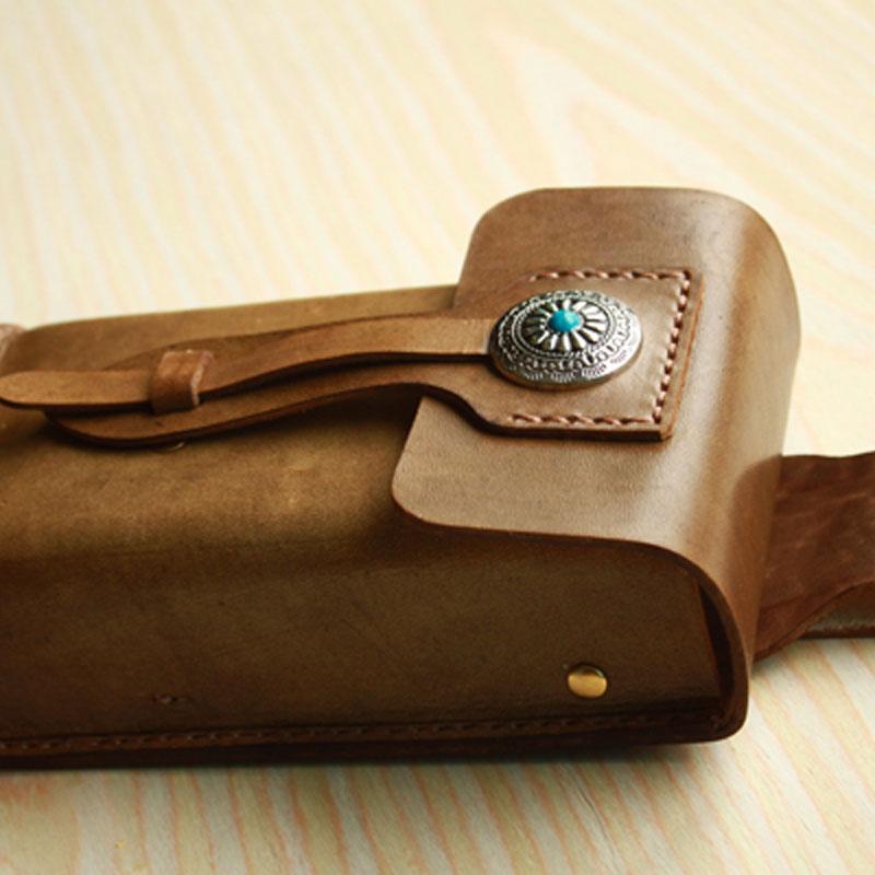 Style: Handmade Cool Leather Belt Pouch Mens Waist Bag Cell Phone Holsters for Men