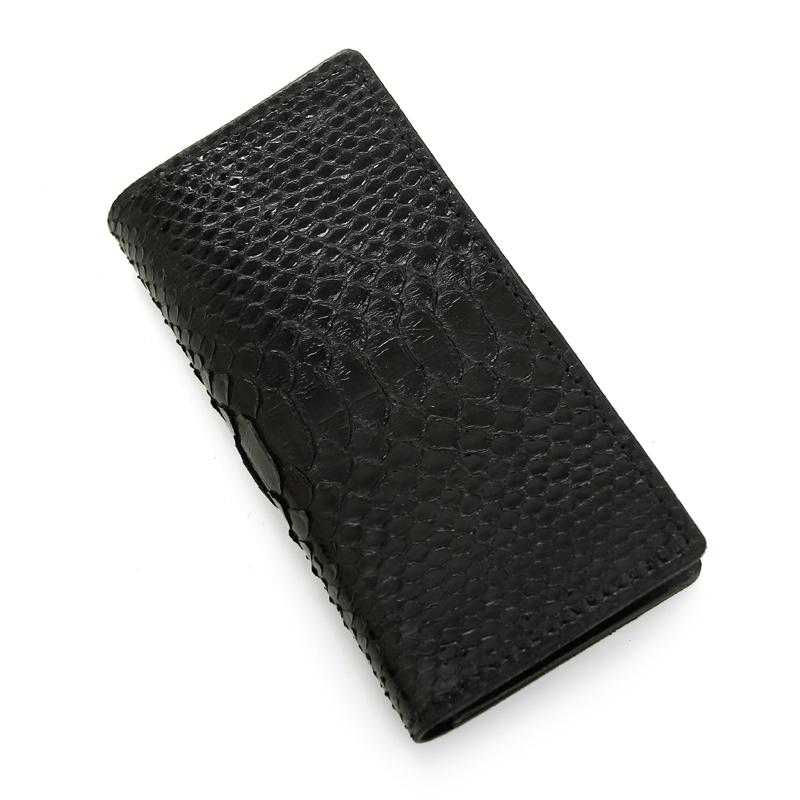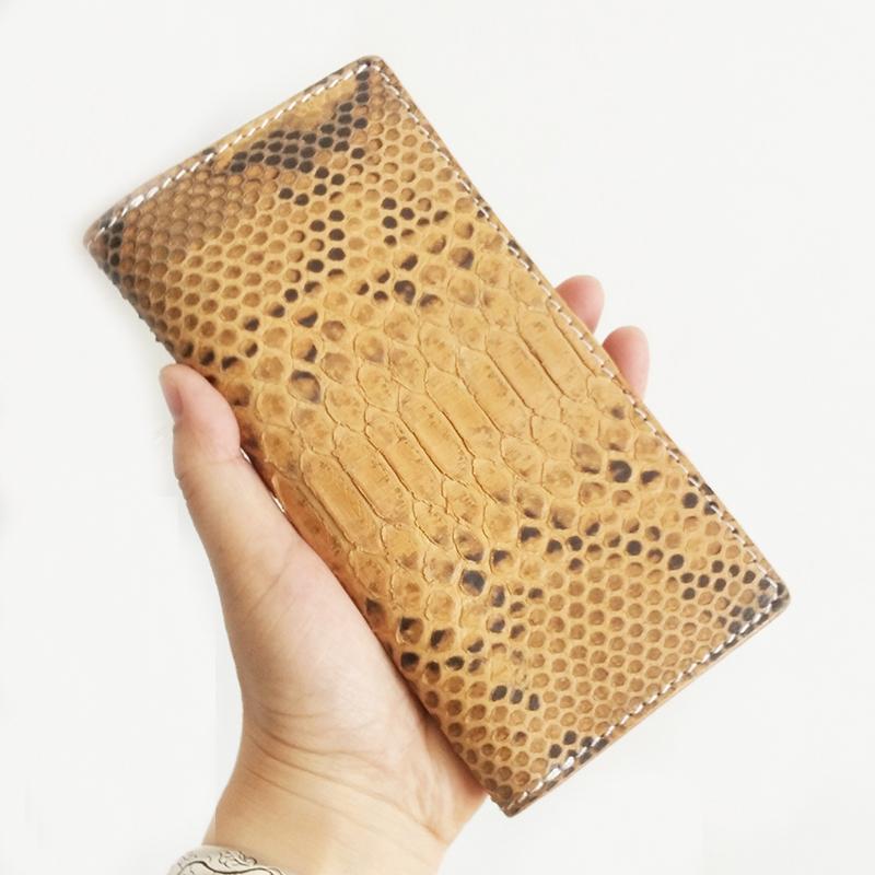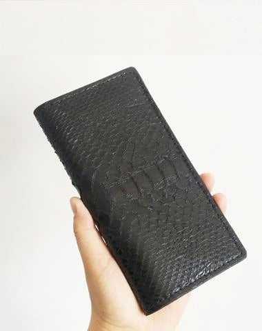 Style: Handmade Cool Mens Black Snake Skin Long Wallet Yellow Slim Bifold Long Wallets For Men