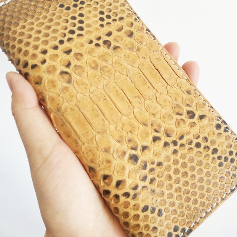 Design: Handmade Cool Mens Black Snake Skin Long Wallet Yellow Slim Bifold Long Wallets For Men