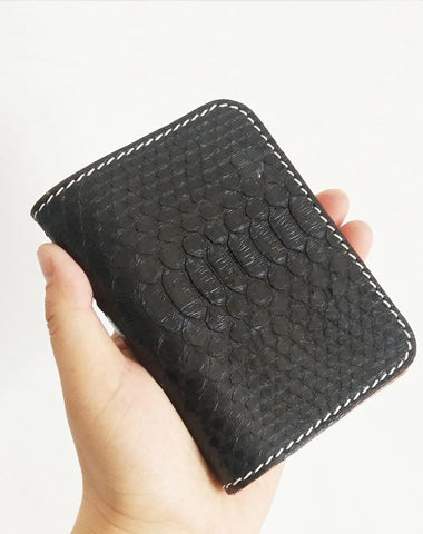 Style: Handmade Cool Mens Snake Skin Small Wallet Slim billfold Wallets Black Card Wallet For Men