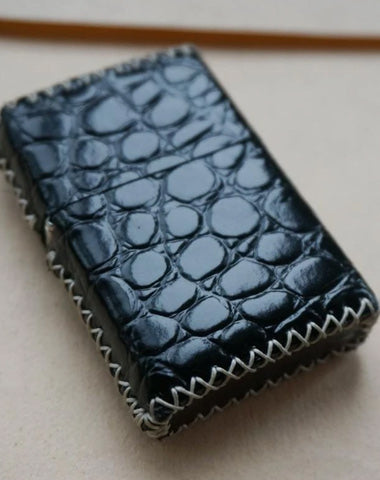 Style: Cool Handmade Black Leather Mens Classic Zippo Lighter Case Standard Zippo Lighter Holder for Men