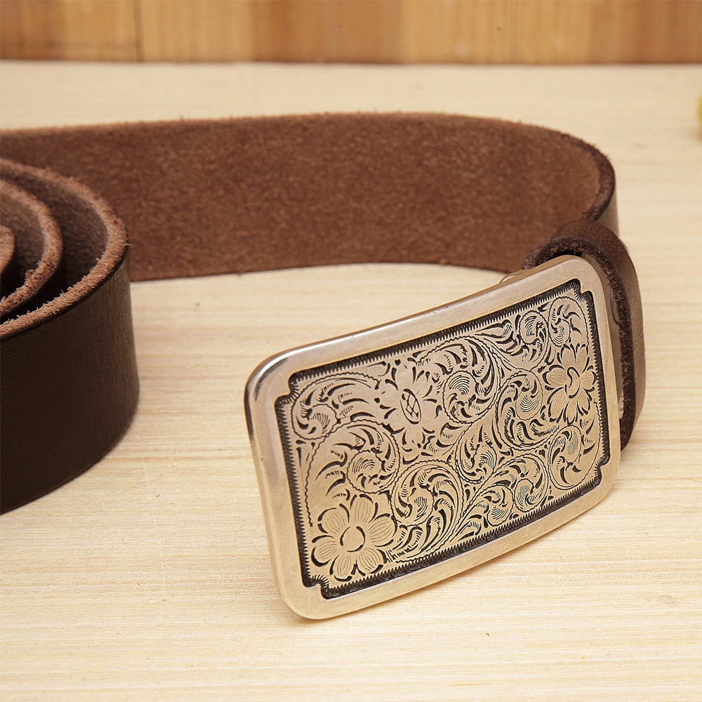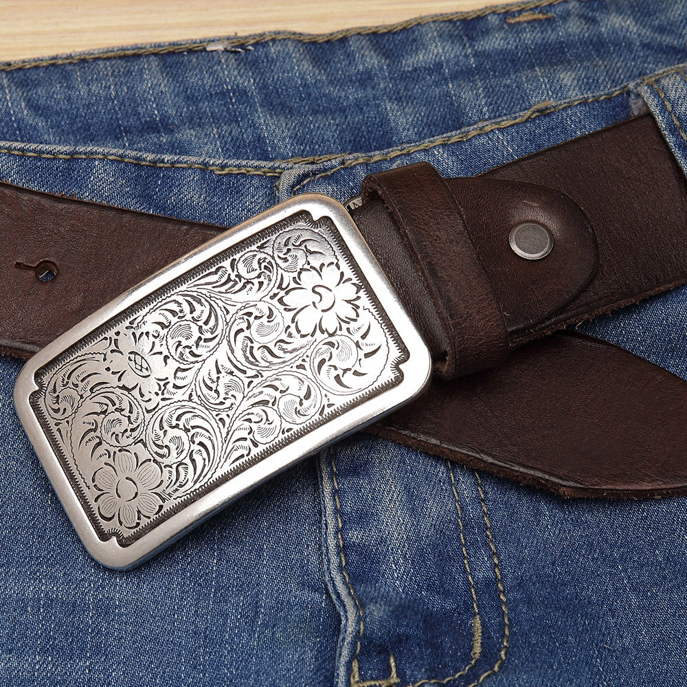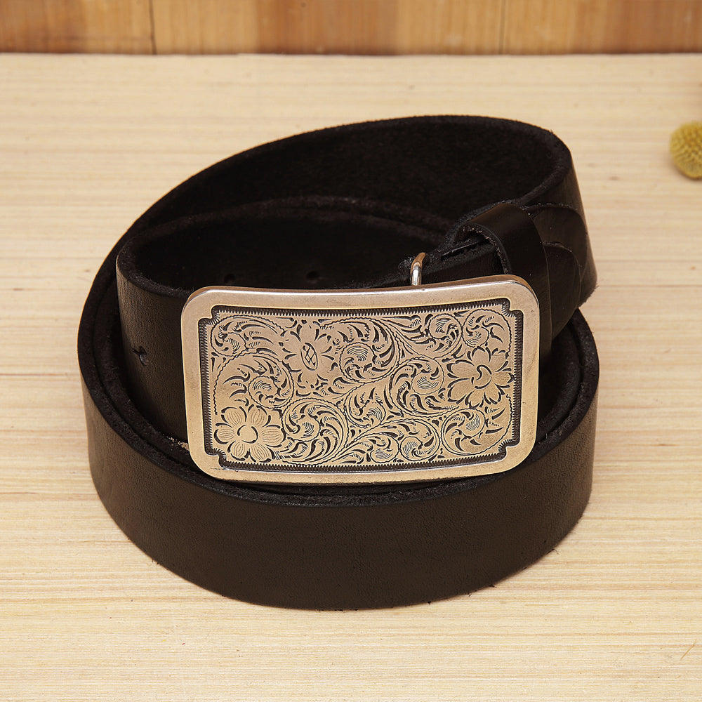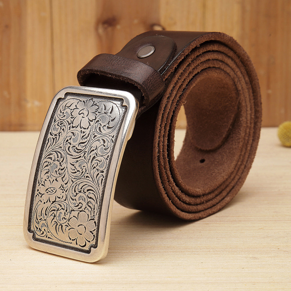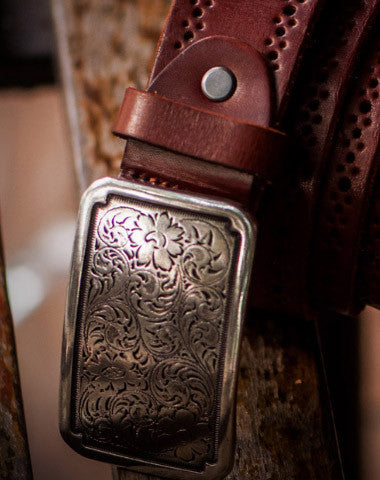 Design: Floral biker Trucker leather belt for men