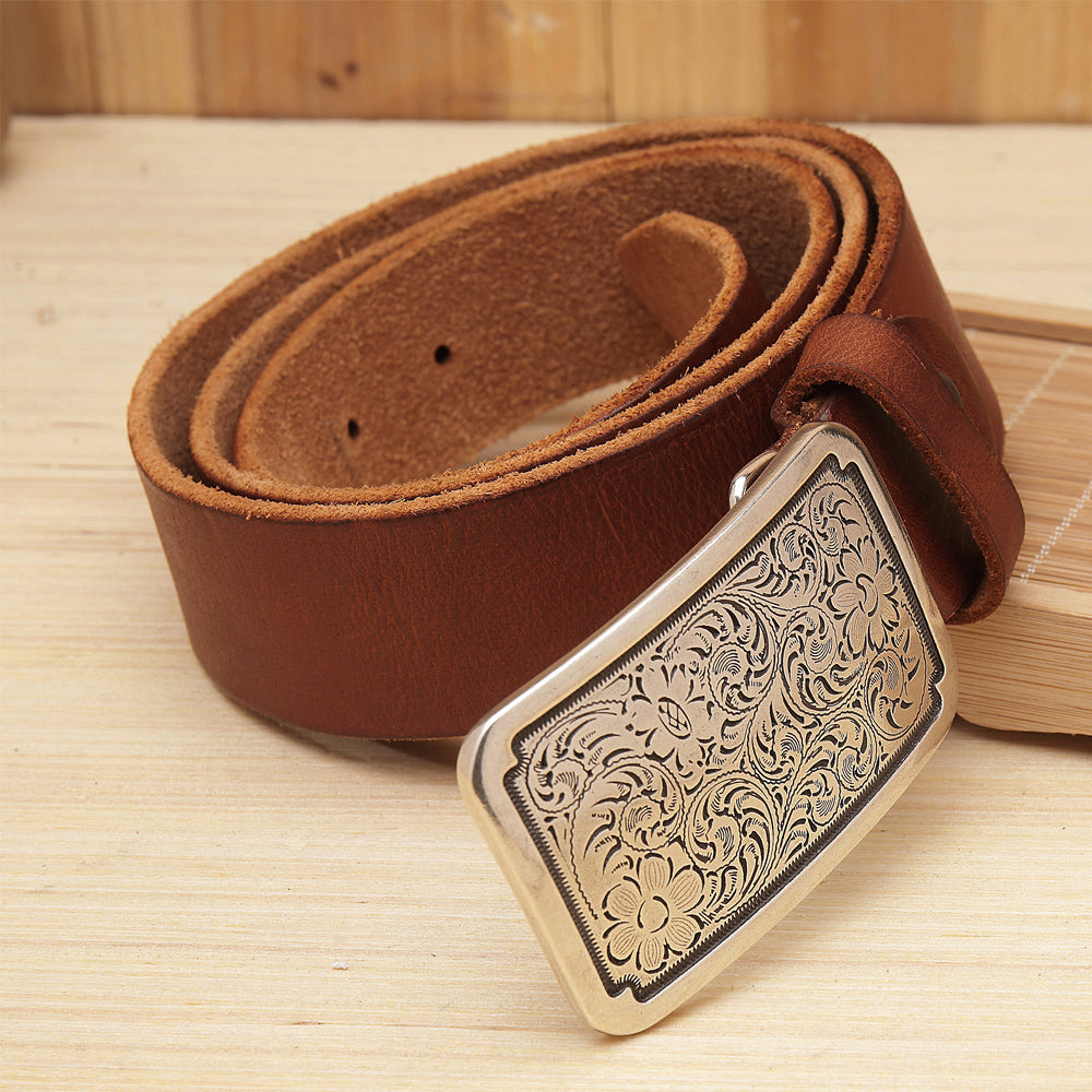 IMPORTANT NOTE: Order your custom leather belt 2" LARGER than your pant size (i.e., 36" pant size = 38" belt). Or, better yet, measure around your waist or hips, wherever you will wear the belt, and ADD 2" to that measurement. If you will be wearing a designer/western style buckle with this belt do NOT add the 2", as the designer/western style buckle adds 2" to the length of the belt.