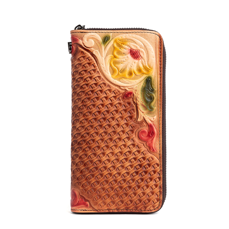 Style: Handmade Leather Wristlet Wallet Womens Floral Zip Around Wallets Flowers Ladies Zipper Clutch Wallet for Women