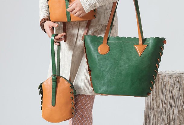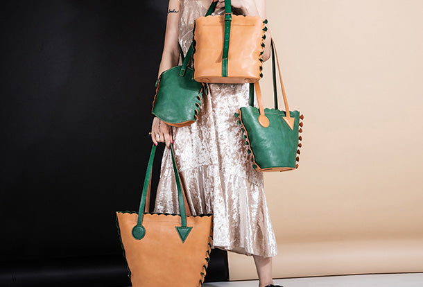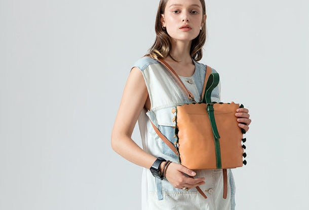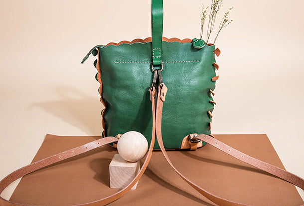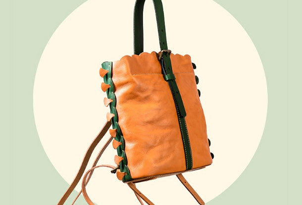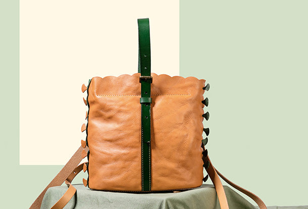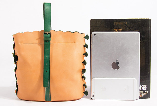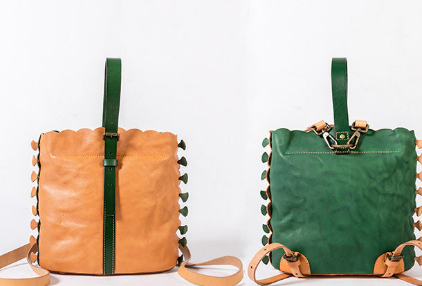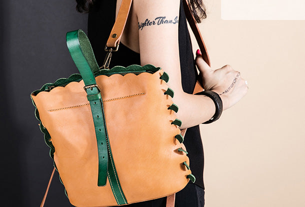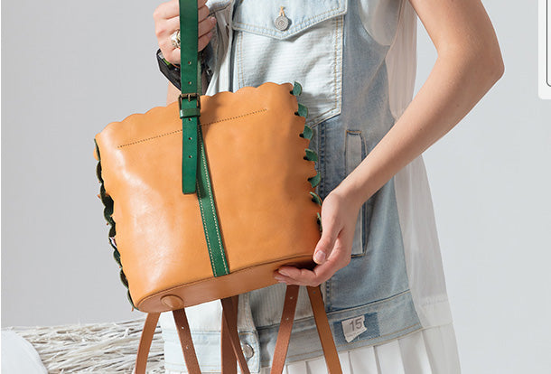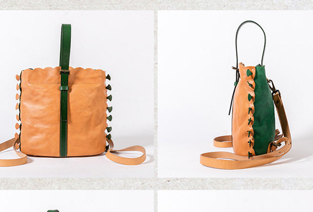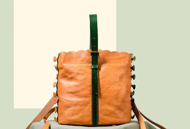 Handmade Genuine Leather Backpack Bag Bucket Bag Handbag Shoulder Bag Leather Purse For Women
