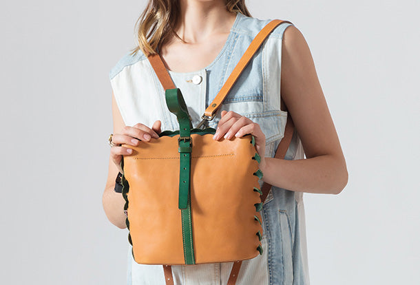 Design: Handmade Genuine Leather Backpack Bag Bucket Bag Handbag Shoulder Bag Leather Purse For Women
