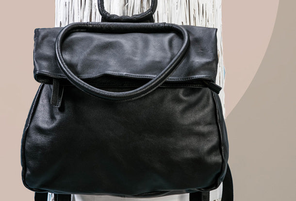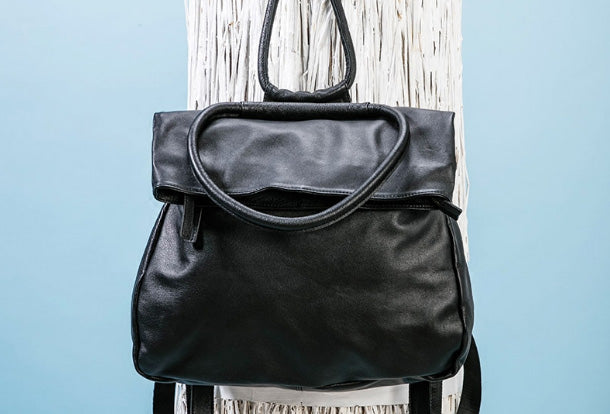 Design: Handmade Genuine Leather Backpack Bag Shoulder Bag Black Women Leather Purse