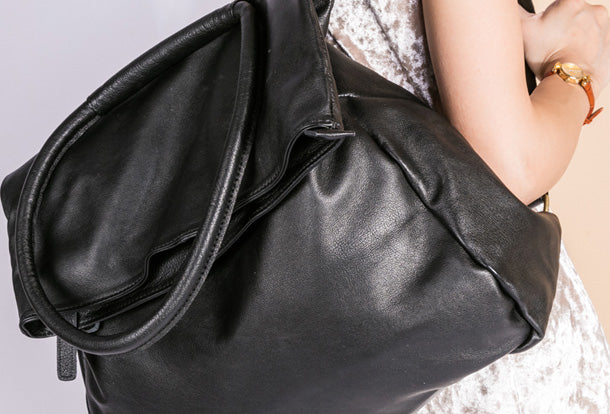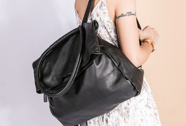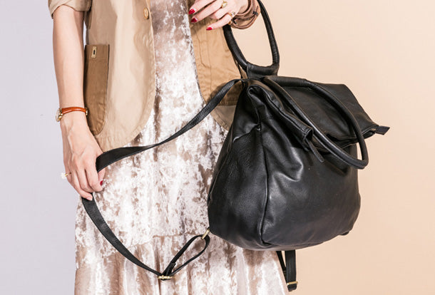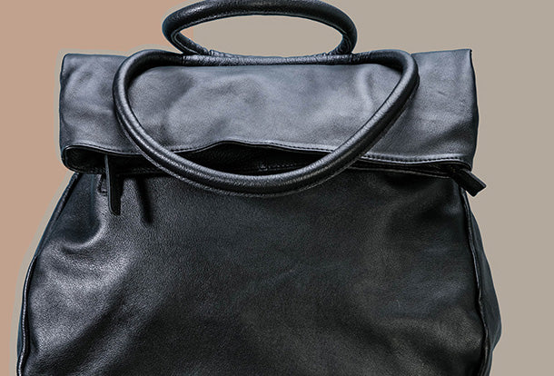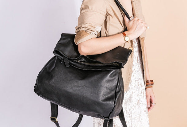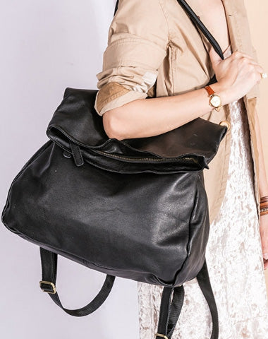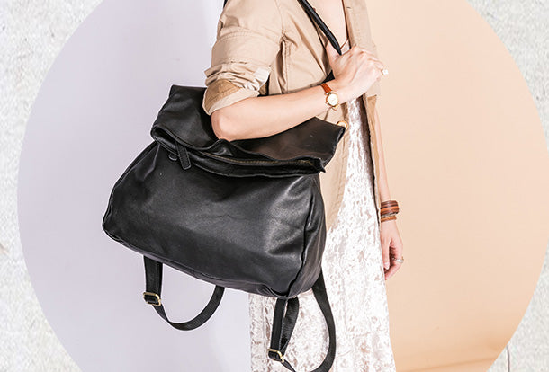Style: Handmade Genuine Leather Backpack Bag Shoulder Bag Black Women Leather Purse