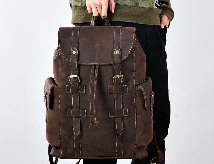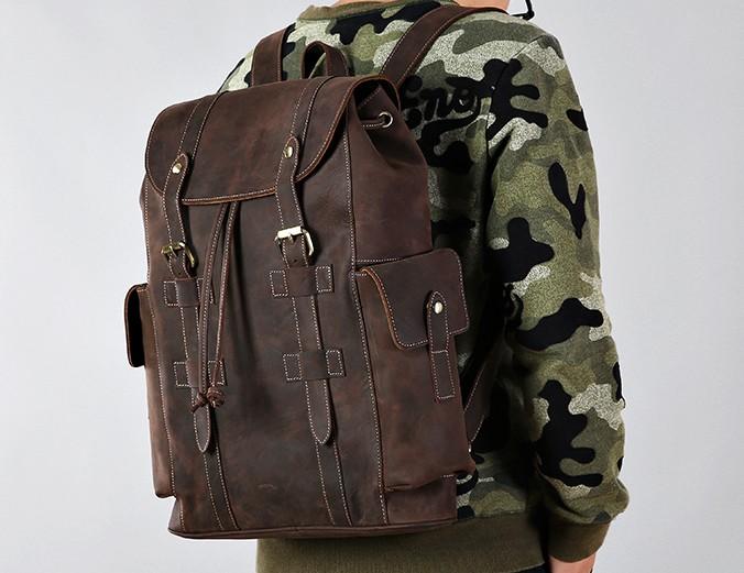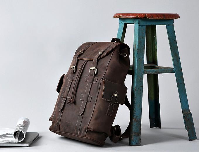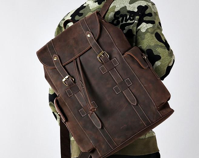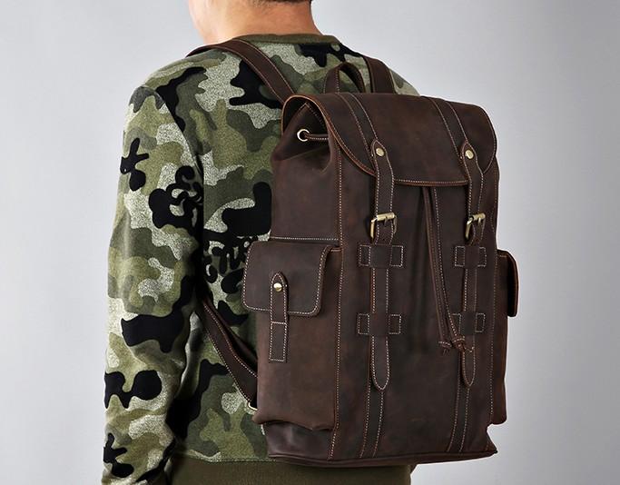 Design: Handmade Genuine Leather Mens Cool Backpack Sling Bag Large Travel Bag Hiking Bag for Men