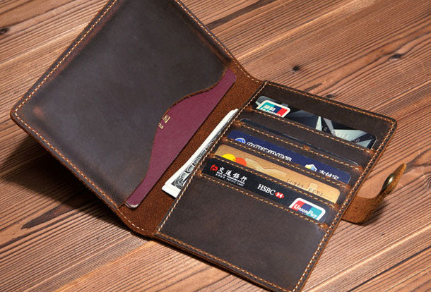Style: Handmade Genuine Leather Wallet billfold Leather Wallet Slim Bifold Wallet Wristlet Bag For Women