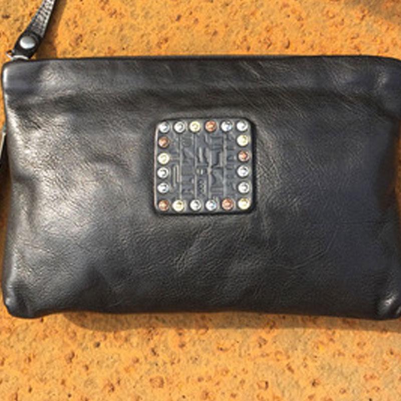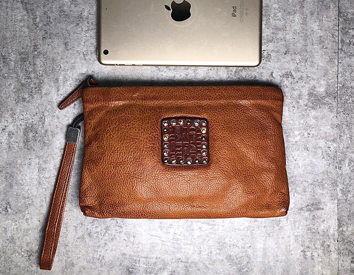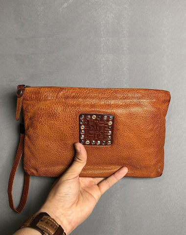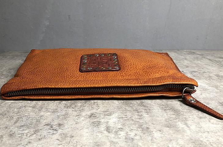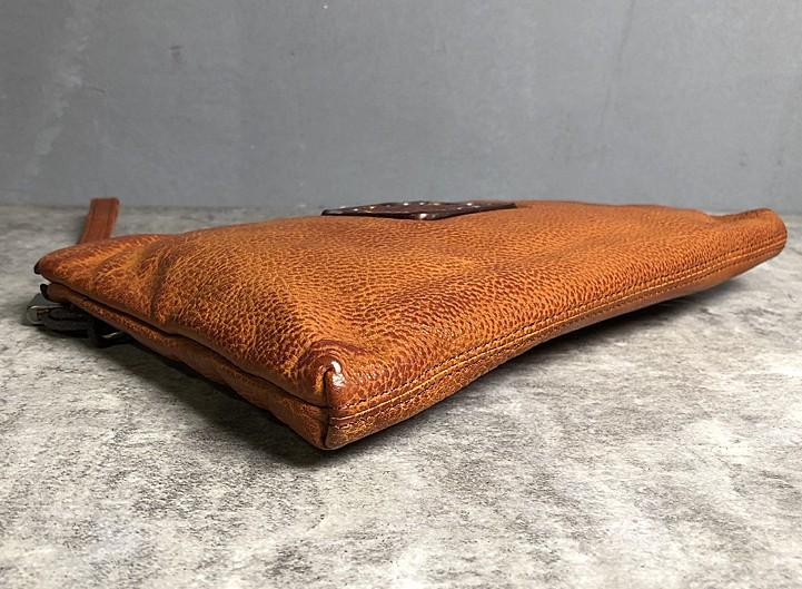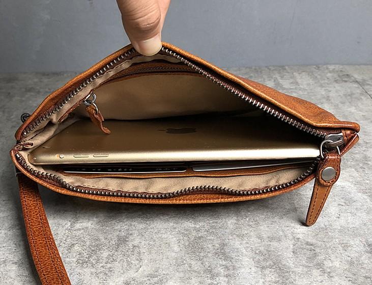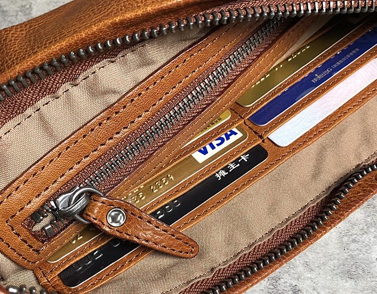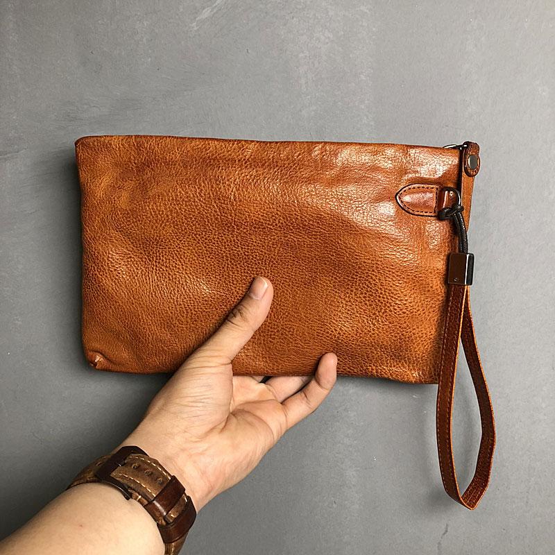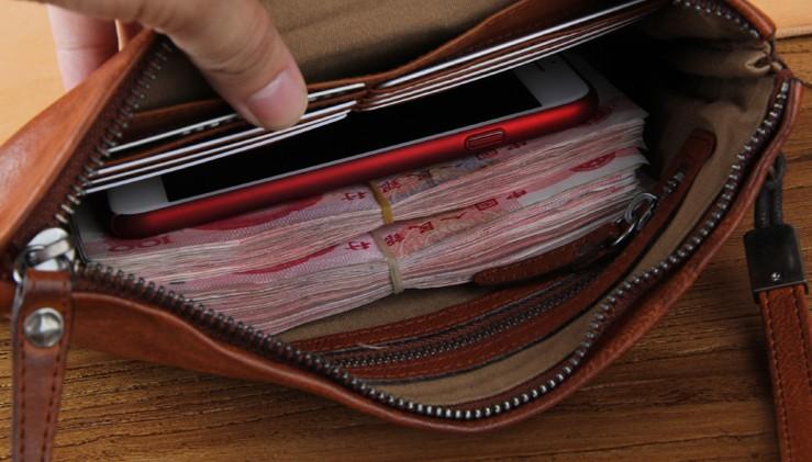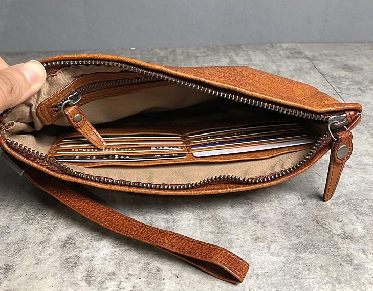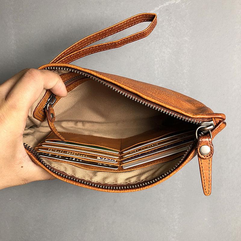 Design: Handmade Genuine Leather Mens Clutch Cool Slim Wallet Zipper Clutch Wristlet Wallet for Men