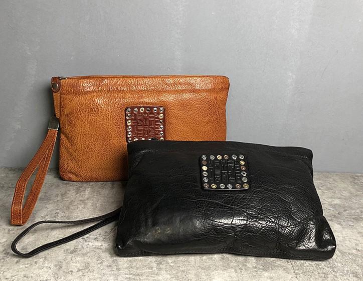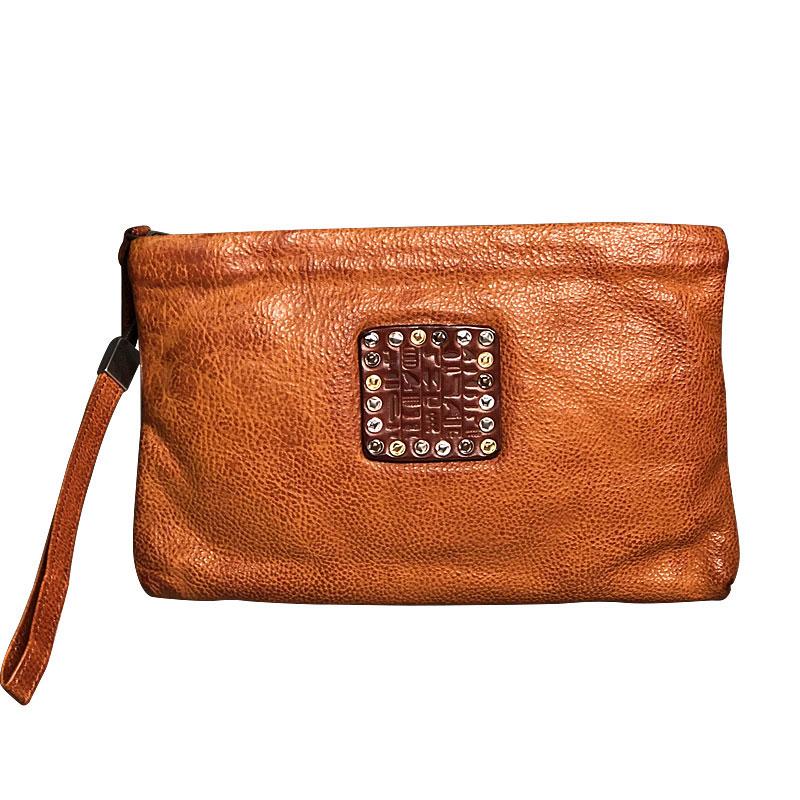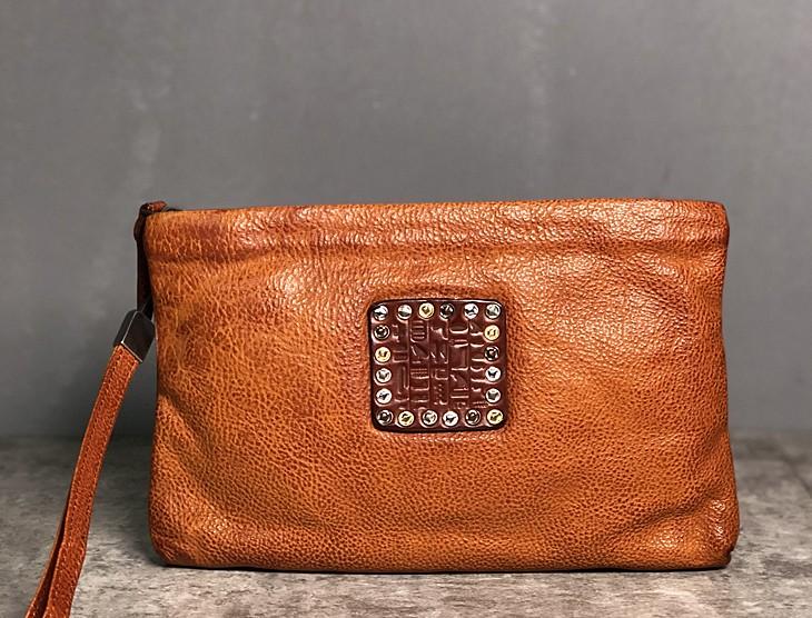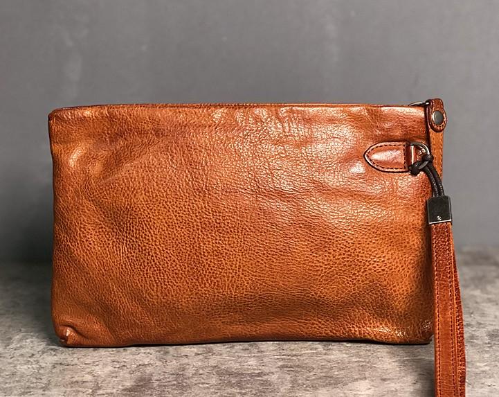 Style: Handmade Genuine Leather Mens Clutch Cool Slim Wallet Zipper Clutch Wristlet Wallet for Men