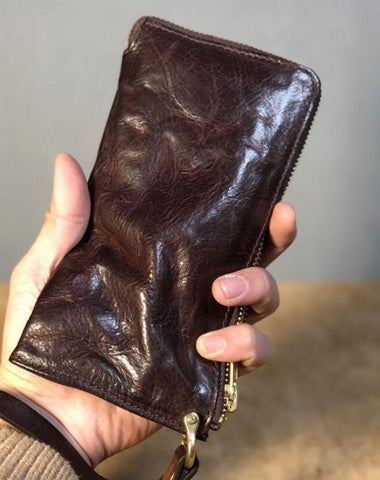 Design: Handmade Genuine Leather Mens Cool Biker Chain Wallet Long Leather Wallet Slim Clutch Wristlet Wallet for Men