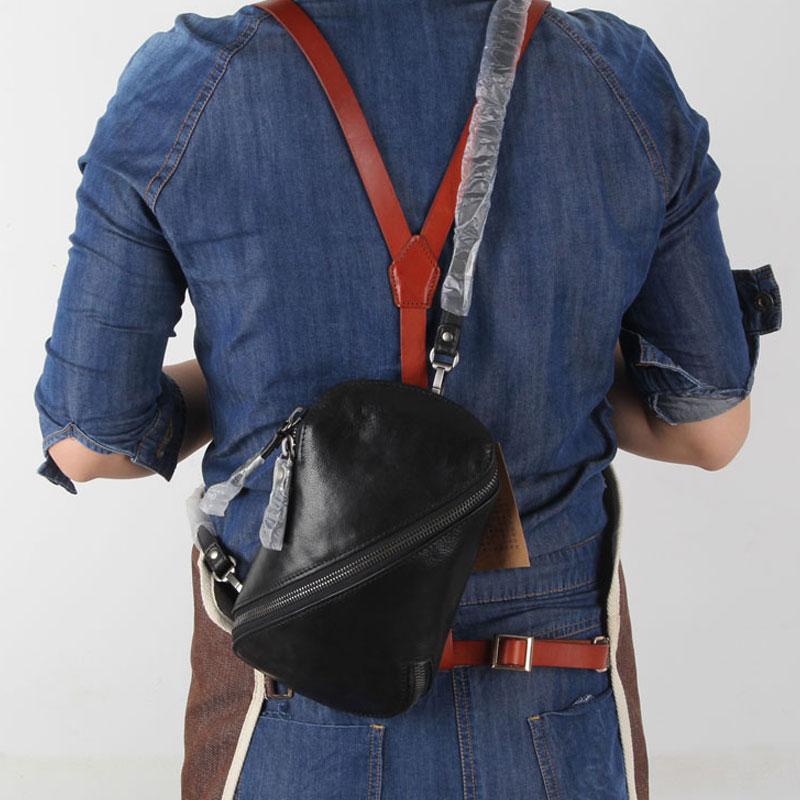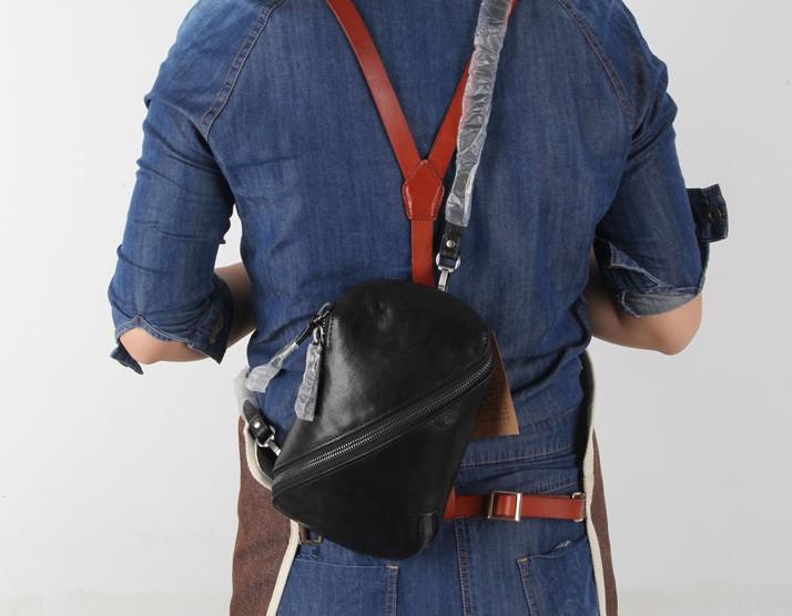 Design: Handmade Genuine Leather Mens Cool Chest Bag Sling Bag Crossbody Bag Travel Bag Hiking Bag for men